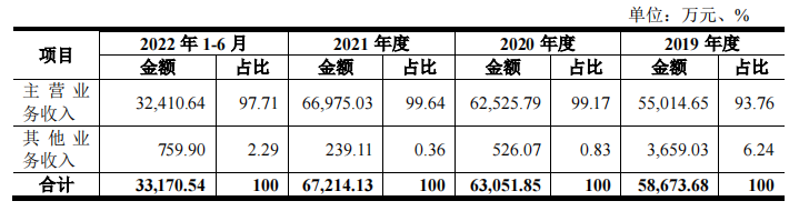 在营业收入方面,2019年度至2022年1-6月,无线传媒营业收入分别为58,673.68万元、63,051.85万元、67,214.13万元及33,170.54万元;主营业务收入分别为55,014.65万元、62,525.79万元、66,975.03万元及32,410.64万元,三年复合增长率为10.34%,占营业收入的比重分别为93.76%、99.17%、99.64%及97.71%。