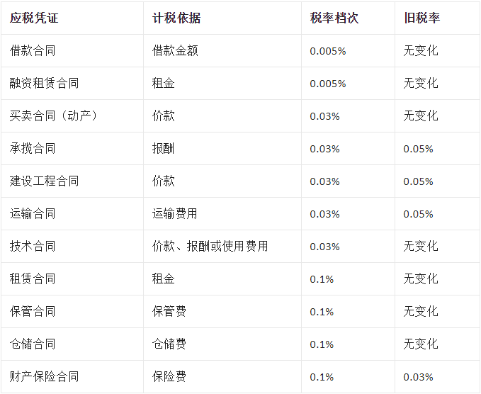 03其他印花税税率变化比较