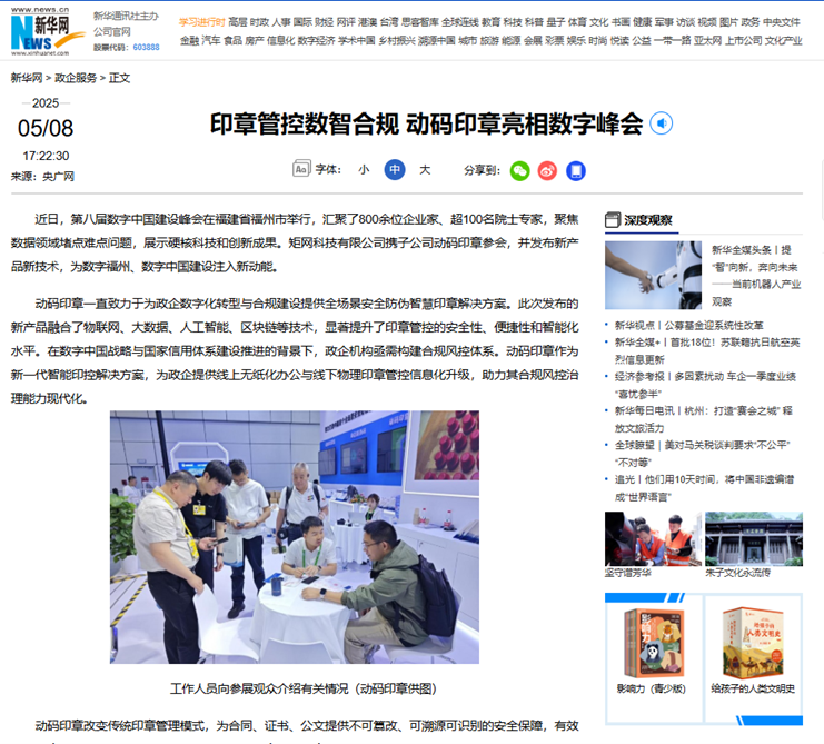动码印章AI智能印章亮相数字峰会获新华网相关媒体重点报道