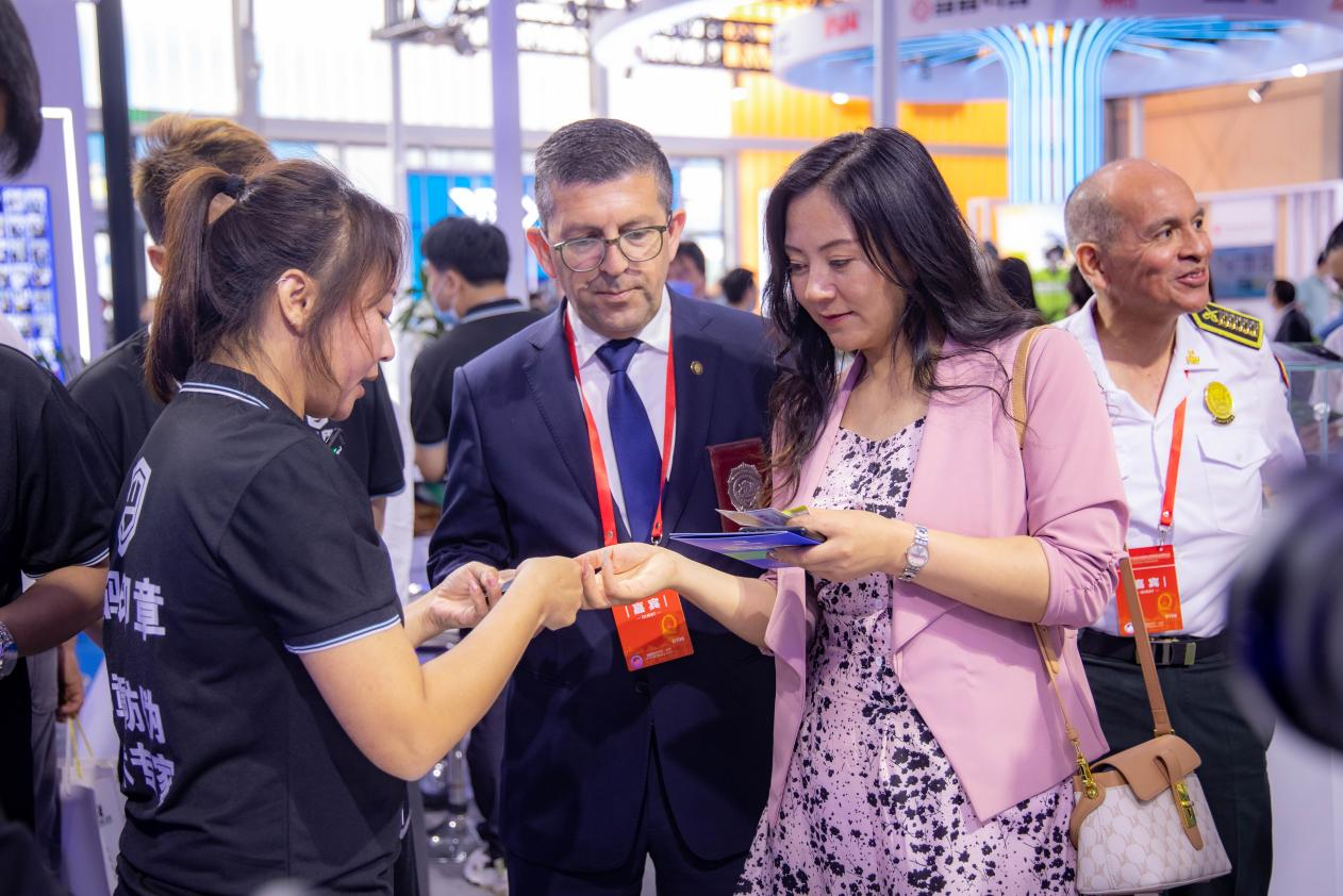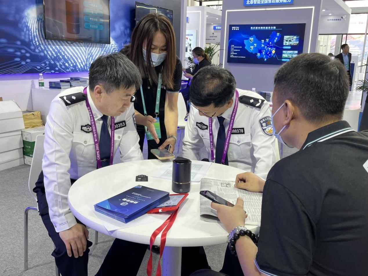 2023年5月11-14日,第十一届警博会(下称“警博会”)于北京首钢会展中心(首钢园)举办。此次展会大咖云集,不少高科技的创新产品都参与到展会中来。其中,一款自主创新研发的智慧防伪产品脱颖而出,受到国内外人士的广泛关注。秘鲁与智利驻华使馆人员也光临这款智慧防伪产品的展位,与项目负责人详细分析了产品如何应用在护照签发、查验等系统,使护照签发和查验更高效、便捷、安全。